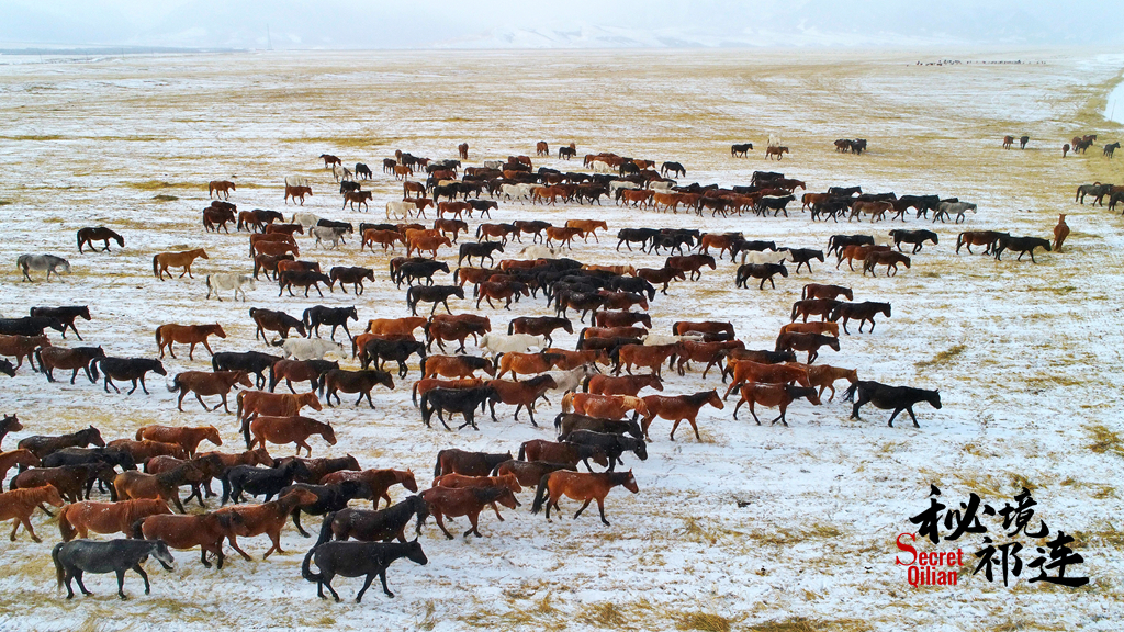 这是山丹马场的冬日时光,宽阔的天地间骏马奔腾。