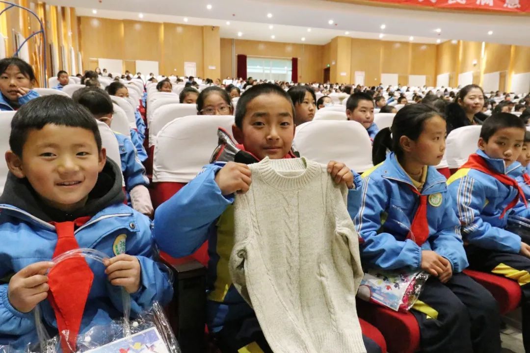 活动为来自新区移民安置区、在第二小学就读的学生捐赠校服215套,同时为10名学生代表发放爱心毛衣。孩子们手捧“爱心毛衣”无比欢喜,脸上纷纷露出幸福的笑容。