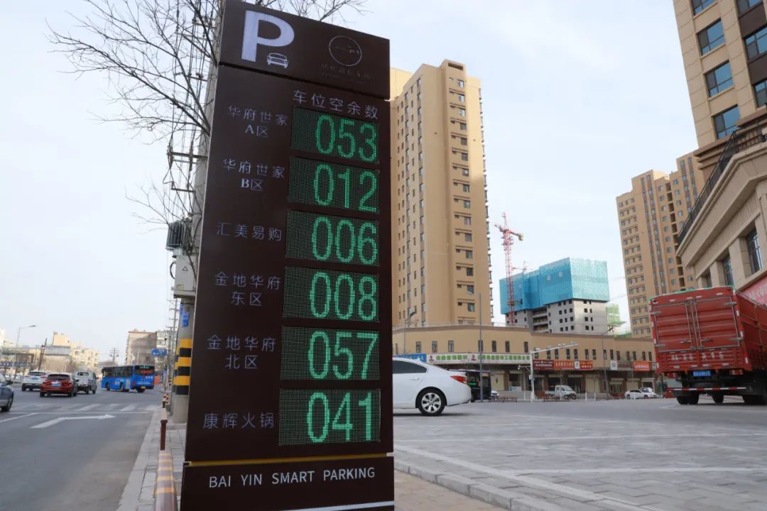 在各智慧化停车场出入口指示灯箱已安装到位,电子显示屏上除了显示本停车场车位余量,还显示了本辖区其他停车场车位余量,与小程序数据同步,进行动态显示,方便市民选择。