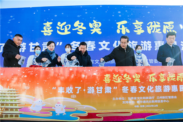 12月20日,由甘肃省文化和旅游厅联合兰州新区管委会共同主办的喜迎冬奥·乐享陇原——“丰收了·游甘肃”冬春文化旅游惠民活动启动仪式在兰州新区举行。活动旨在认真贯彻党的十九届六中全会精神,深入落实省委十三届十五次全会暨省委经济工作会议精神,引导全省文旅系统政企合力,践行以人民为中心的发展思想,持续推进文旅行业全面复工复产,做热做火冰雪旅游和冬春文化旅游市场,诚邀全国亿万农民和广大游客惠游如意甘肃,共谱甘肃文旅系统喜迎冬奥、助力冬奥、“一起向未来”的华彩篇章。