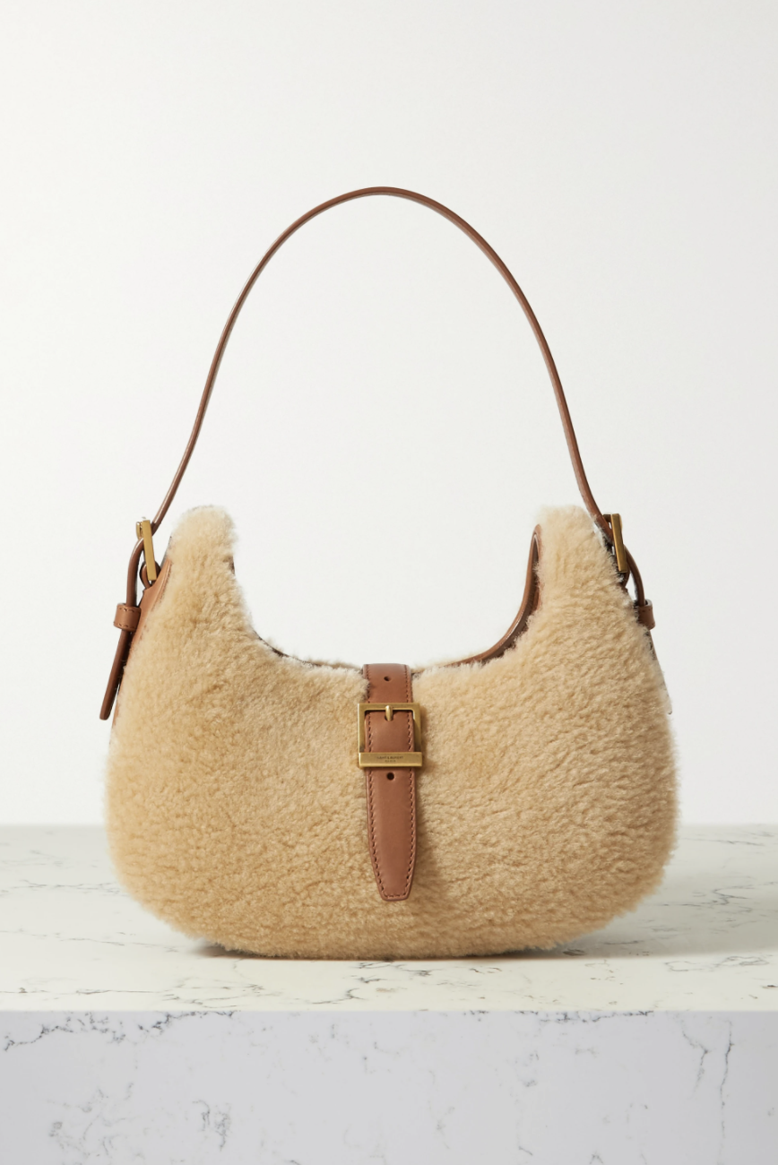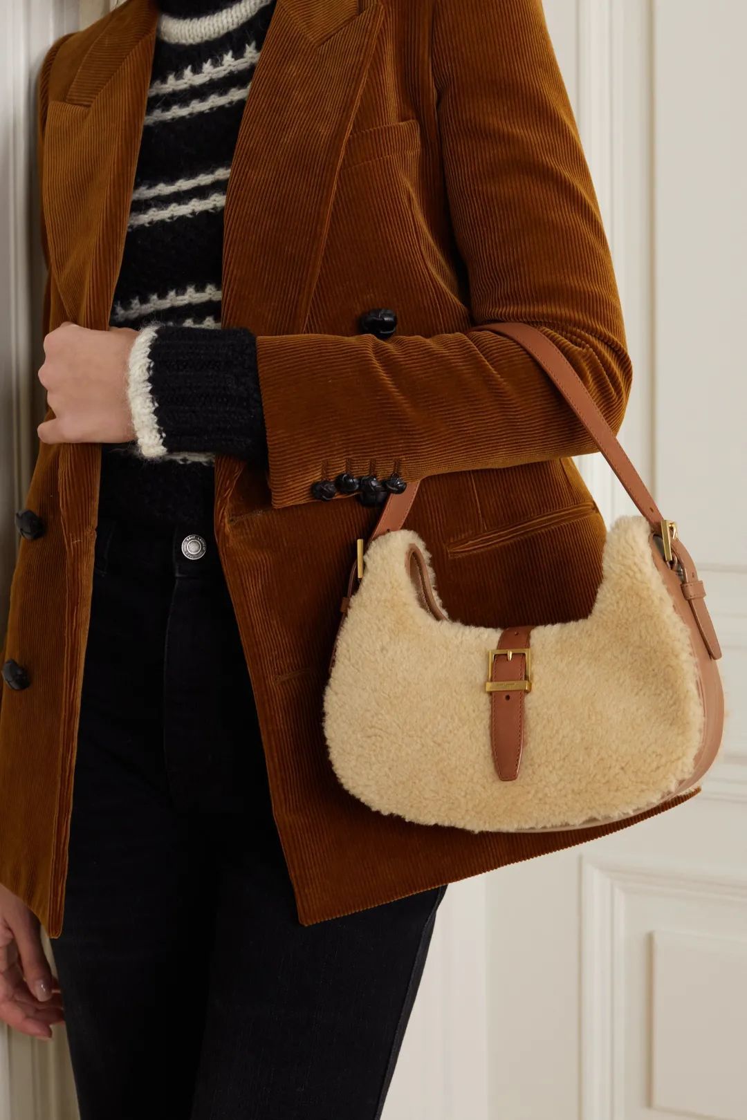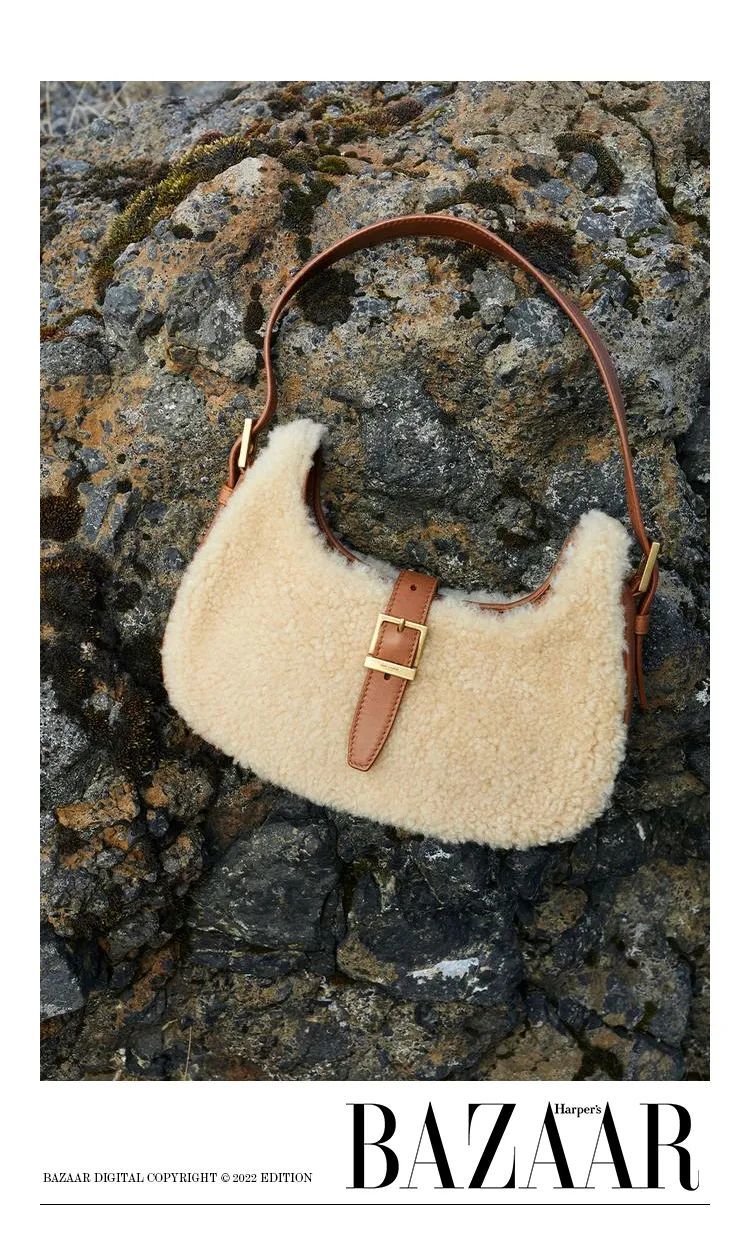 与LE 5 À 7手袋冷冽犀利的性感风格不同,半月牙形的Le Fermoir包包可以说把复古气质这块拿捏得恰到好处。尤其是剪羊毛材质这一款,柔软细腻的羊毛与光滑显高级的皮革拼接,将秋冬的氛围感瞬间拉满。
