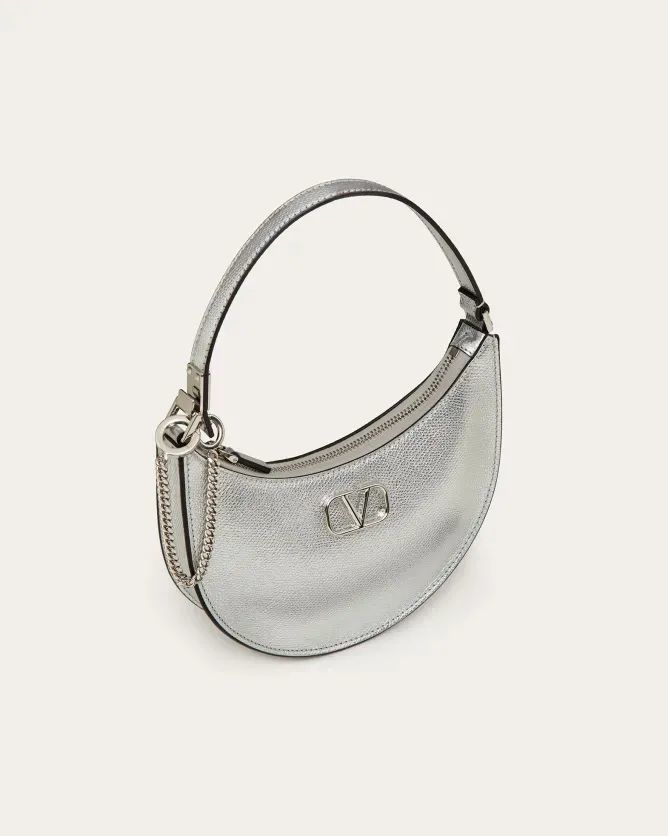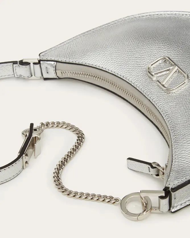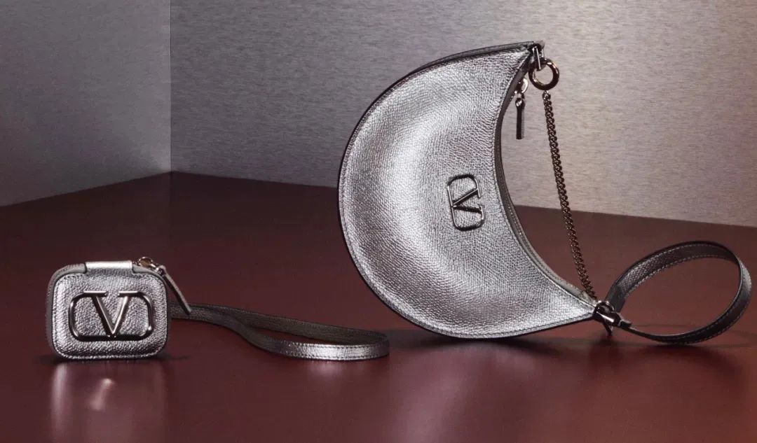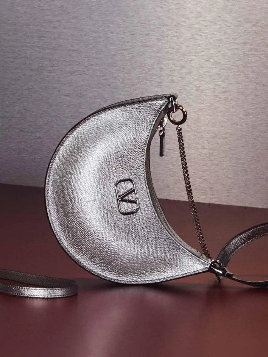 Valentino最近新出的“The Party Collection”节日系列里,就有一只很适合派对场合的月牙包。半月形的包身用上金属质感的银色,仿佛夜幕中月华流泻的银月,看到的瞬间就被击中。