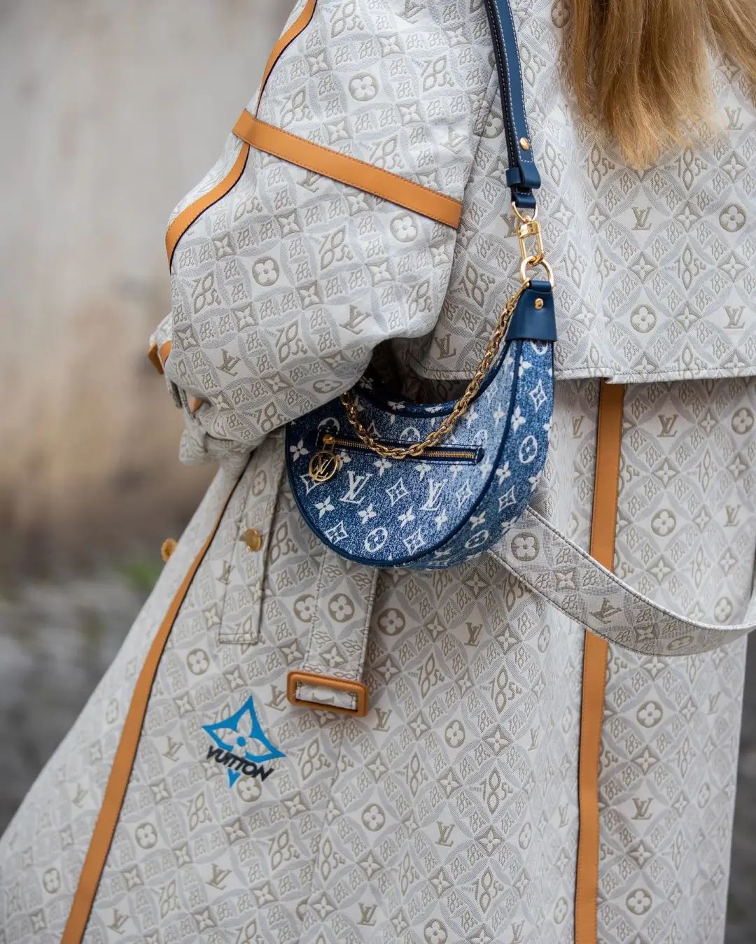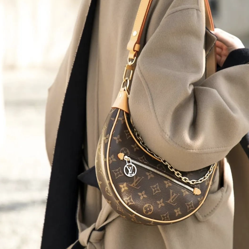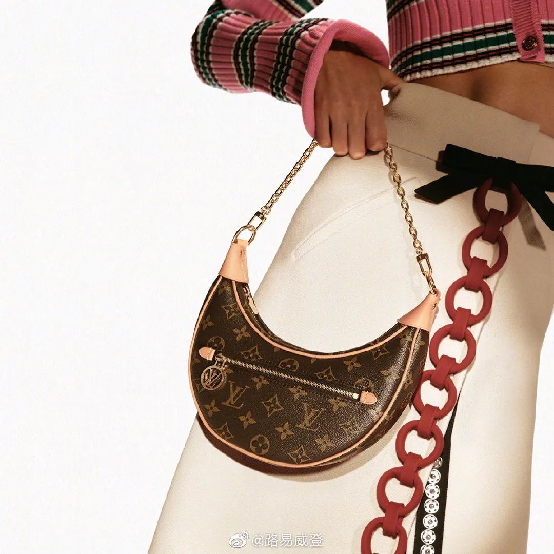 Louis Vuitton在2022早春系列里也推出了一款半月形的腋下包,刚上市就立马成为爆款。这款有着迷人曲线的手袋名叫Loop,灵感源于品牌档案中的“豌豆包”Croissant Bag。