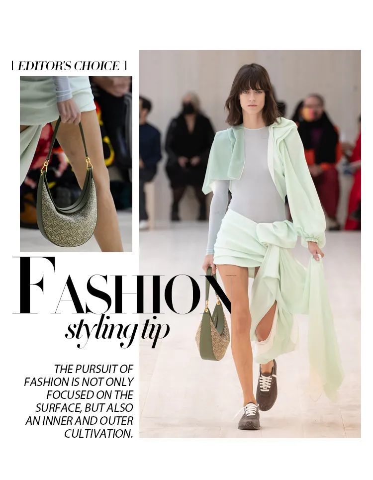 在2022春夏的秀场上,月牙包也成为大热的时髦趋势,几乎每个品牌都会推出一两款,弯弯的月牙轮廓,成为最有存在感的包包造型。