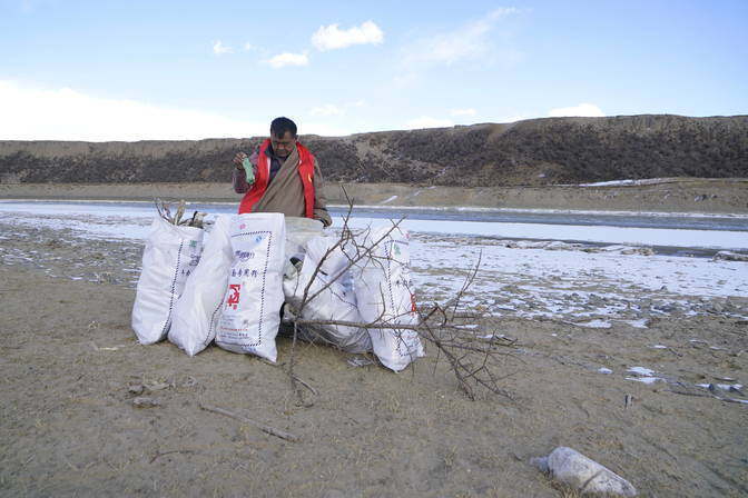 “全镇越来越多的人加入到捡拾黄河沿岸垃圾和清理草场的队伍。2021年3月25日,卓玛加布组织黄河沿岸乡镇牧村党员218人,用3个月时间徒步黄河玛曲段433公里,清理垃圾60多吨。”欧拉镇镇长道知扎西告诉记者。