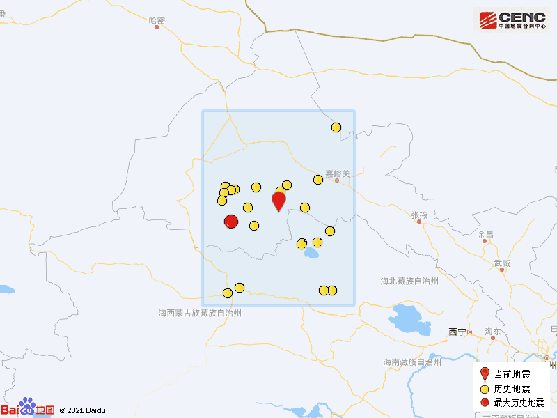 历史地震:根据中国地震台网速报目录,震中周边200公里内近5年来发生3级以上地震共24次,最大地震是2021年8月26日在甘肃酒泉市阿克塞县发生的5.5级地震(距离本次震中113公里),历史地震分布如图。