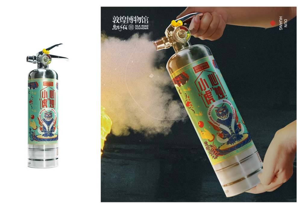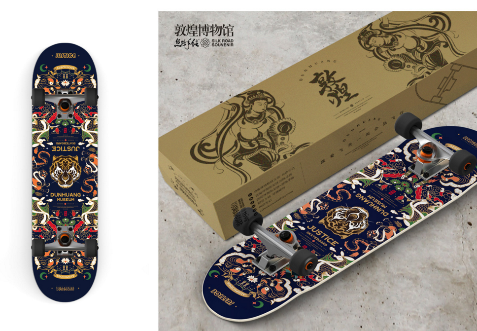 为了迎接虎年,敦煌博物馆推出系列“虎年文创”,滑板、地垫、彩妆、开瓶器、车载灭火器……