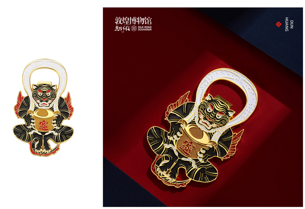 “集威严与权势与一身的虎,也是代表吉祥与平安的瑞兽。我们将白虎形象进行重新设计,赋予它更加庄重威严的气势,祝有缘人新年‘虎虎生风。’”敦煌市博物馆相关工作人员介绍。