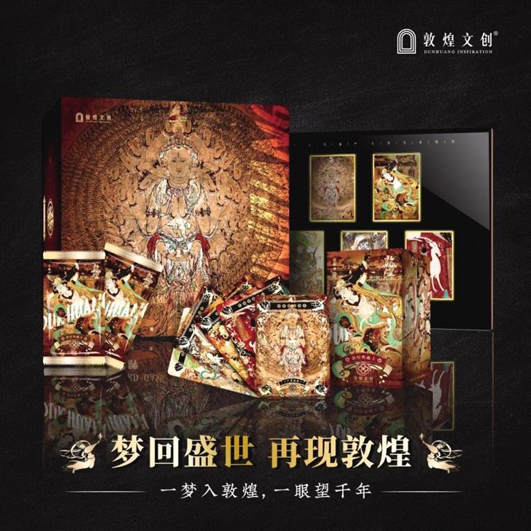 目前,“敦煌文创”不仅已经走在文化与商业结合的前线,更是为文化艺术与科技融合发展做出了领先性的尝试。2021年11月,“敦煌文创”IP首次出海,精致亮相全球授权展·欧洲站,获得大量关注;次月“敦煌文创”又联合多方共同推出敦煌集换式收藏卡牌,首次将AR科技运用在敦煌文创产品上。