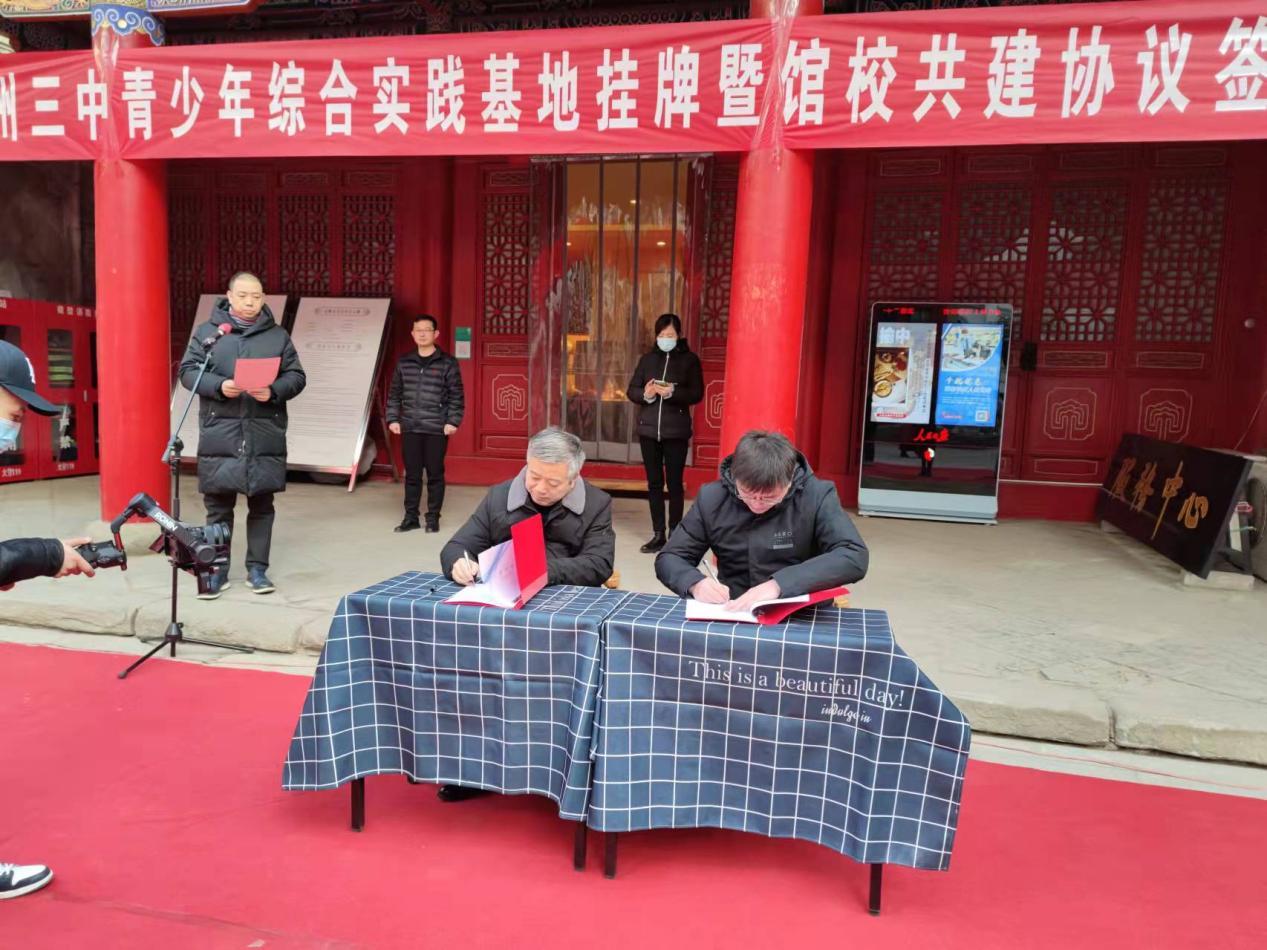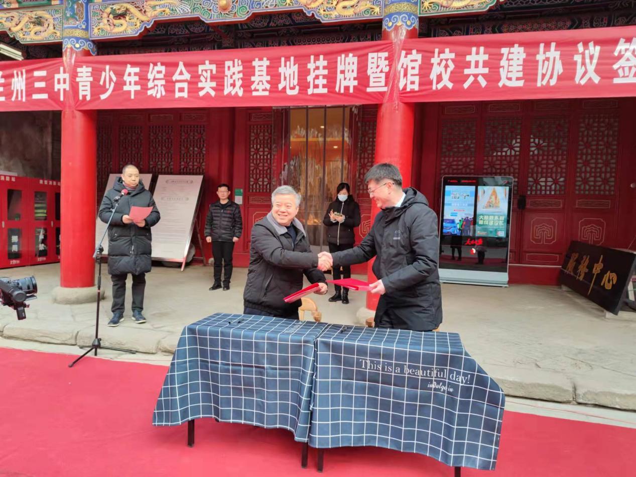 兰州市第三中学校长刘照涌与兰州市博物馆馆长李周明现场签订了《馆校共建合作协议书》,这标志着市博物馆与兰州市学校的合作进入了一个新的阶段。
