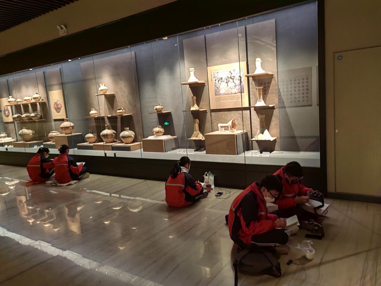 仪式后,讲解员带领同学们进行首次基地实践活动,集体参观了我馆基本展览陈列《大河流韵——兰州历史文物展》,听取了文物背后的故事,动手感受了彩陶的制作流程并进行了实地绘画写生,在实践活动中同学们开拓了视野,学习到了丰富历史知识,体验了精妙的彩陶文化。