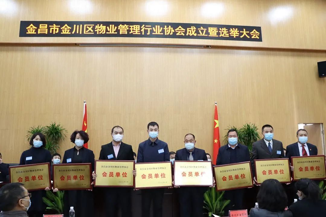 会议宣读了金昌市金川区物业管理行业协会成立批复文件和金昌市金川区物业管理行业协会30家会员单位名单,选举产生了物业管理行业协会理事会会员单位、监事会会员单位和物业管理协会理事长、副理事长、监事长, 并现场举行了授牌仪式。