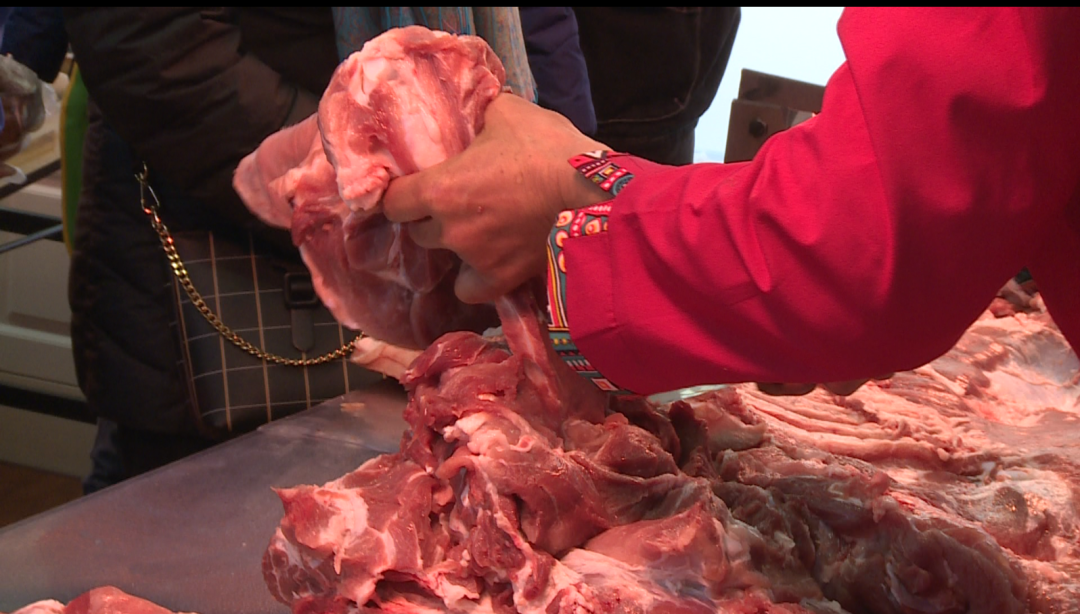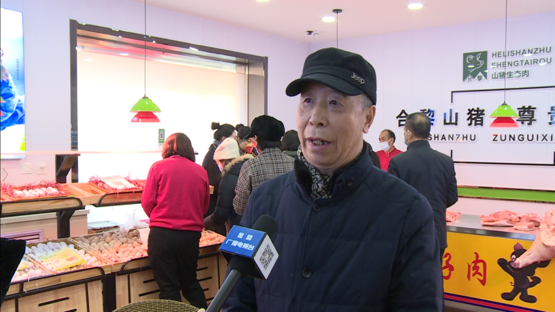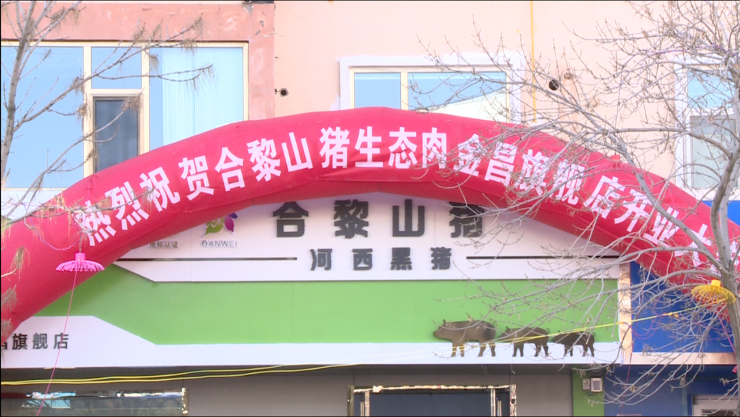 临近春节,市区金盛华城大门附近,全市首家“合黎山猪”猪肉专卖店在这里落户。