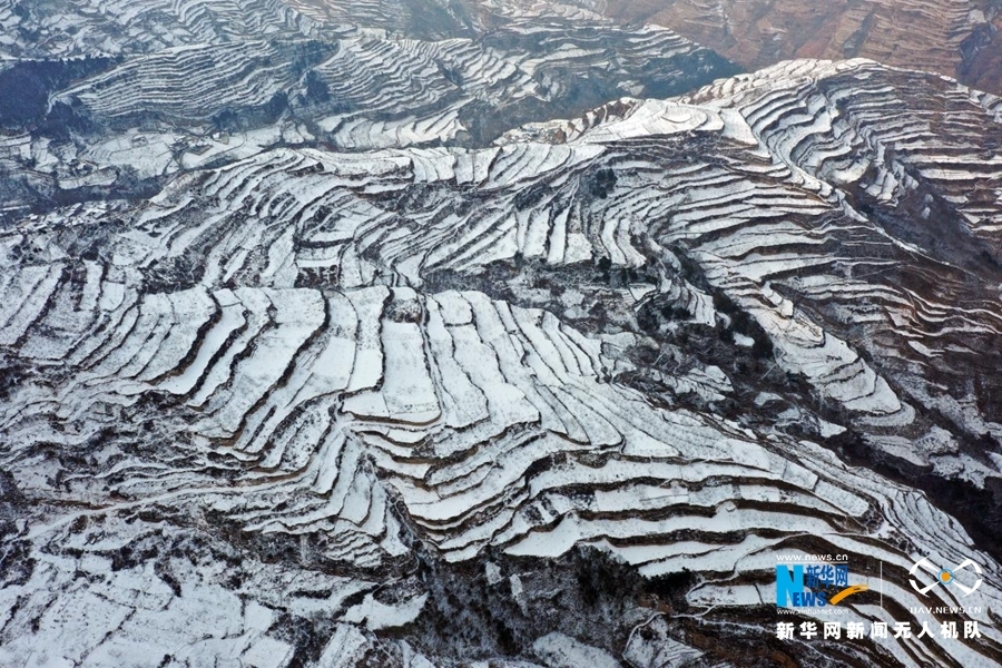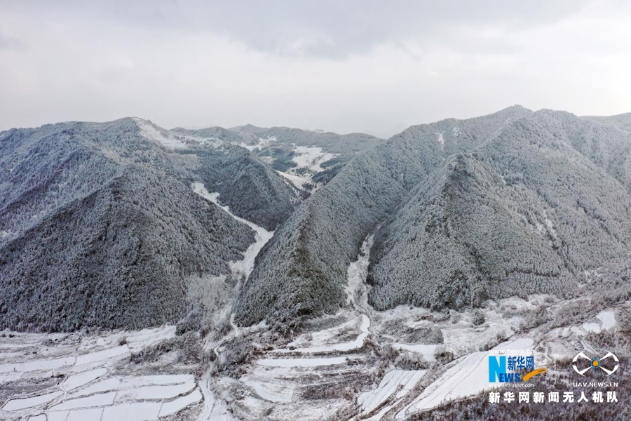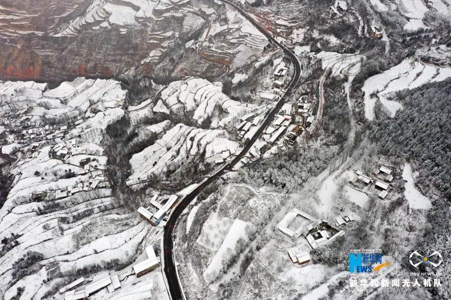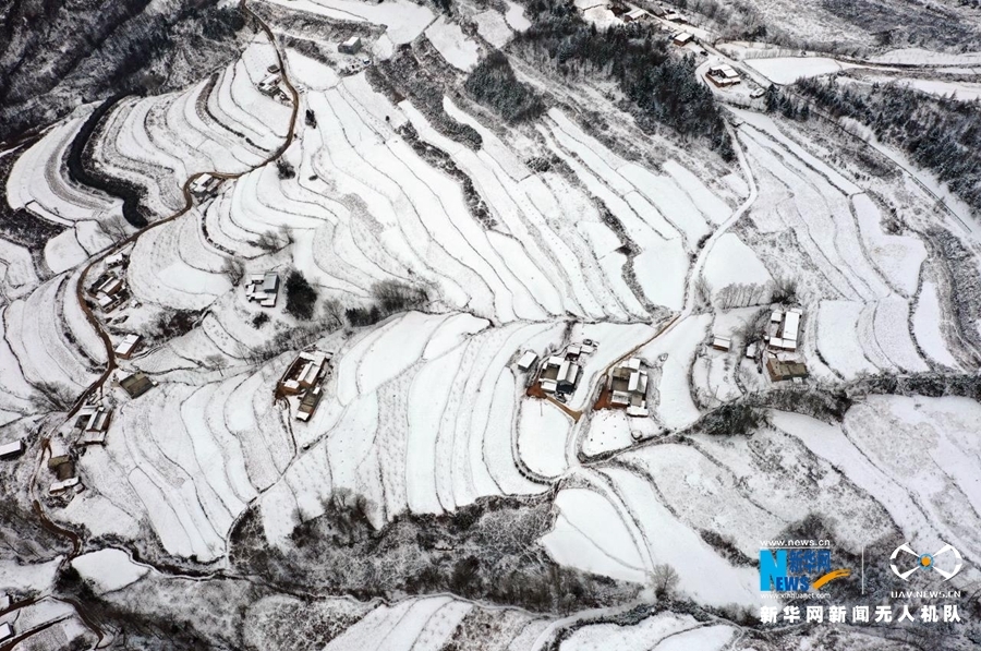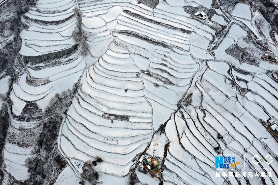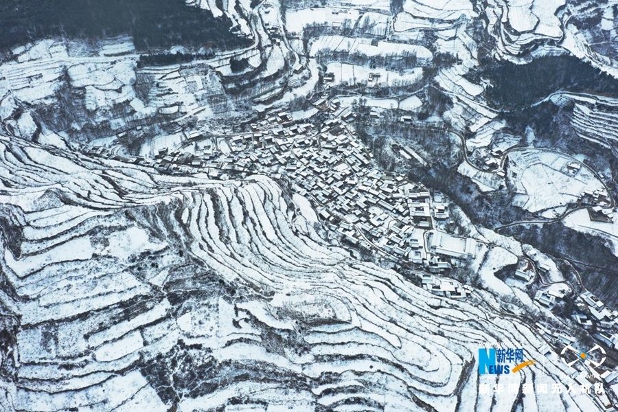 受冷空气影响,甘肃省陇南市迎来连续降雪天气。雪后山乡银装素裹,村庄和梯田构成一幅水墨画卷,美不胜收。