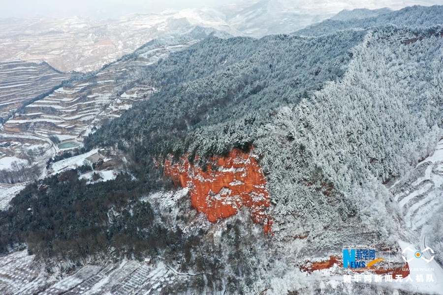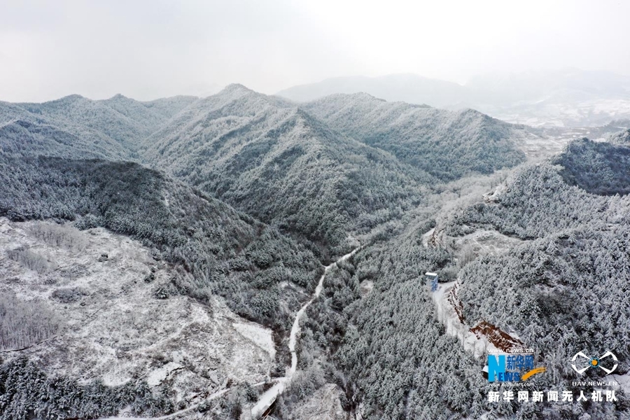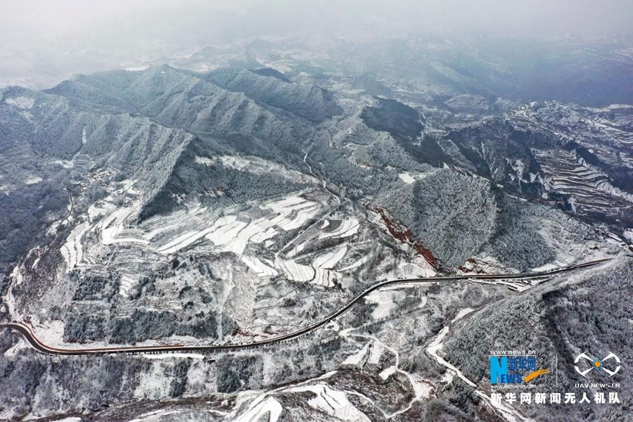 这是2022年1月28日在甘肃省陇南市武都区米仓山航拍的雪景 新华网发 (冉创昌 摄)