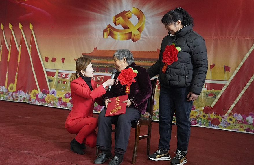 在新粮地文化中心内,上演着温情暖心的“婆媳互夸会”,三对好婆媳讲述着生活中那些难忘和感动的瞬间,现场时而欢声笑语,时而掌声热烈,时而感动哽咽。活动现场,村民自编自导的文化节目秦腔、快板轮番上演,使老人们一边感受有爱的婆媳之情一边享受丰富的文化大餐。“媳妇是真真的好,我腿脚不方便二十年了,一直是媳妇照顾我,给我洗脸洗头,还洗脚,一点也不嫌弃我。”婆婆范玉兰暖心的讲述着与媳妇生活的点滴,儿媳妇高华艳微笑着回应着。