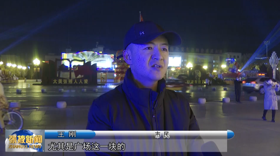市民 王刚:“张掖今年的灯特别漂亮,尤其是广场这一块的,尤其是这几个射灯,让人看了心情愉悦,很有科技感。”