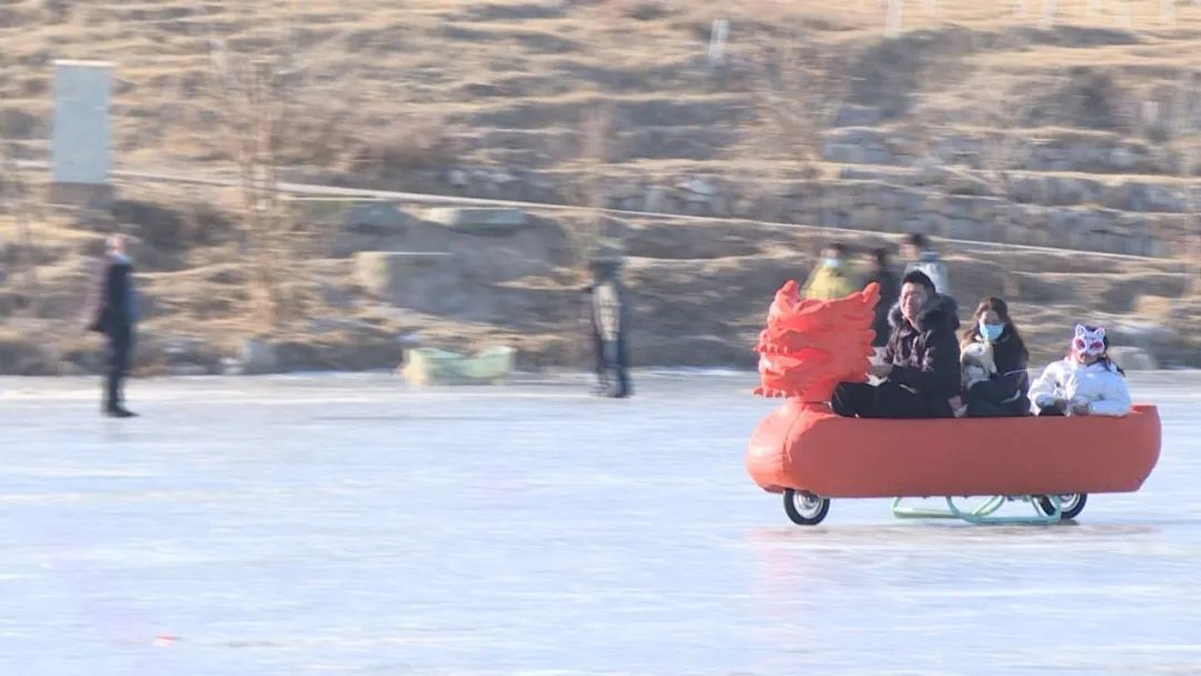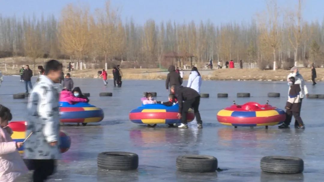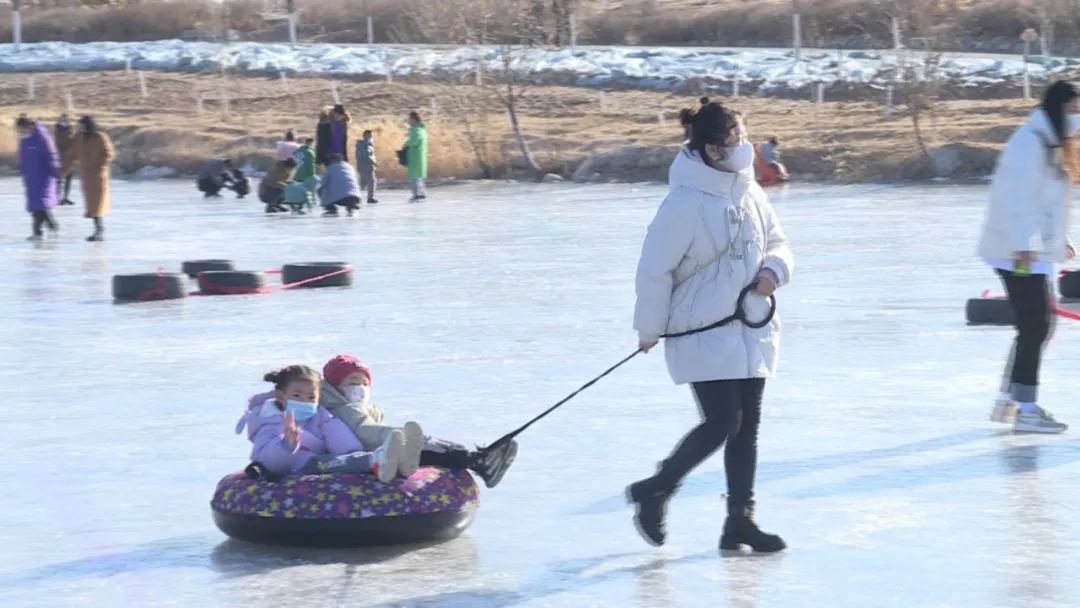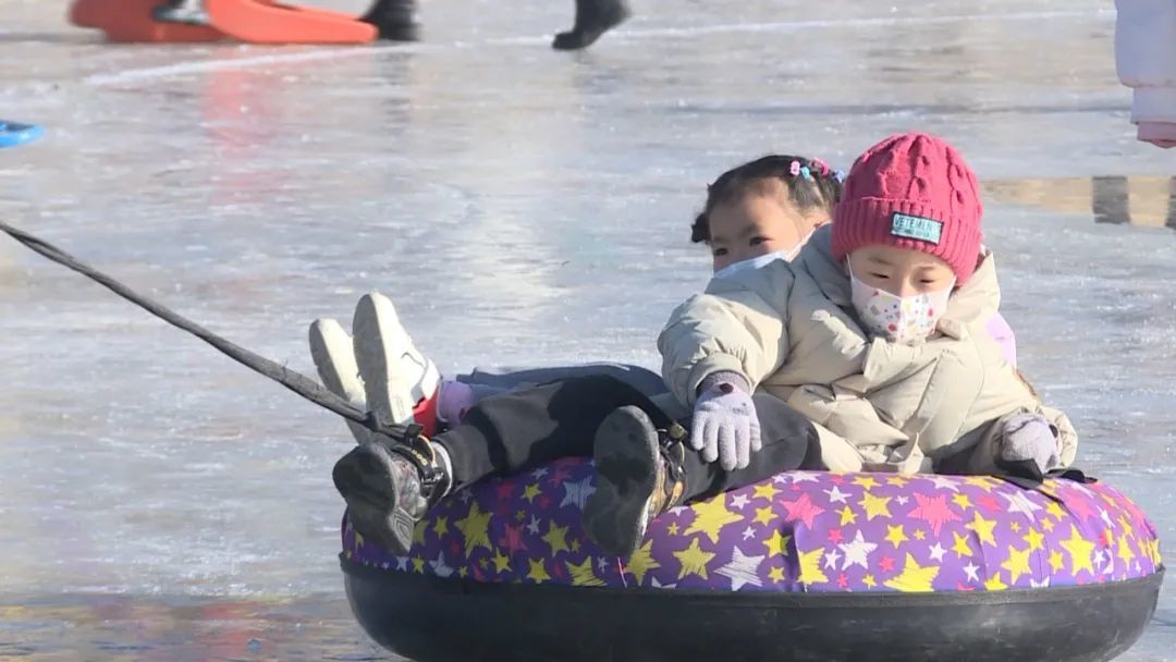 今年春节期间也是咱们迎冬奥的时候,我们市文旅投公司,就是利用玫瑰谷景区这个天然冰场,做了一个冰雪游乐园,总共项目有十几种,同比去年是增加了几项,游客也比去年增多,供游客体验这个冰上运动。