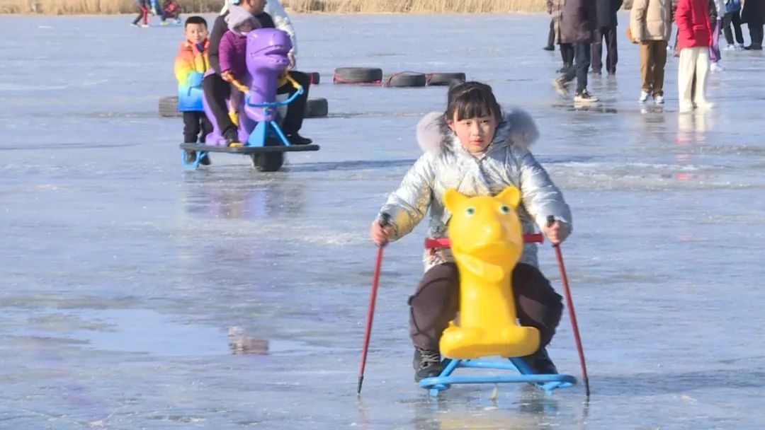 冰场上,狗拉雪橇、电动龙舟、冰上自行车等多种游乐项目,让孩子们玩得酣畅淋漓,一圈一圈,在澄澈的冰面上,他们尽情放飞自我,感受着冰上运动的快乐,家长们在旁边为孩子们加油助威的同时也乐在其中,享受着快乐的亲子时光。