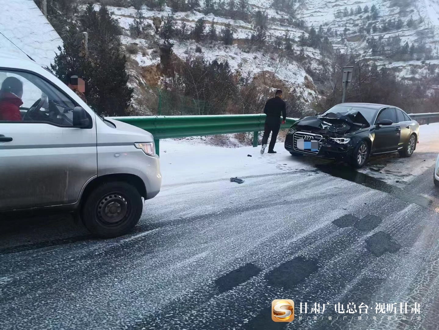 甘肃公安交警提示广大驾驶员稳驾慢行,保持安全车距,切勿急打方向盘和紧急制动。如遇紧急情况或发生交通事故时,请牢记“车靠边、人撤离、即报警”。