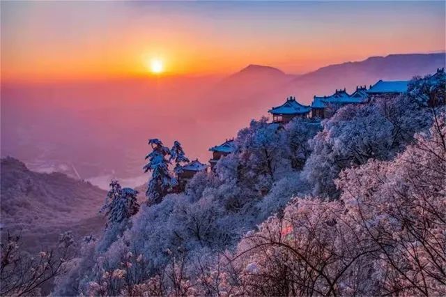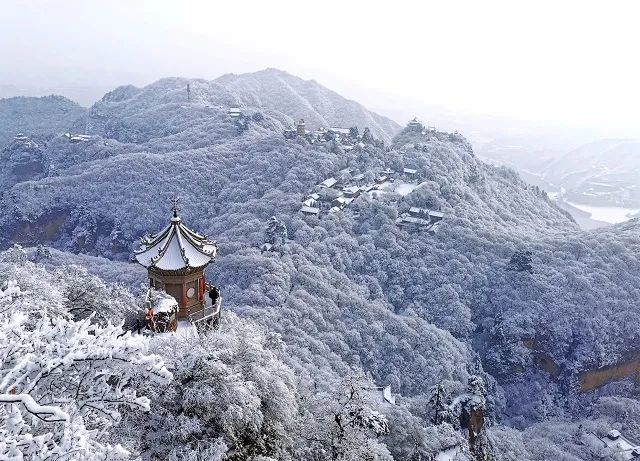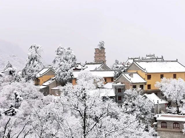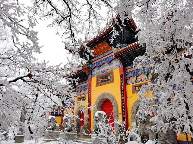 皇城古建筑群的白墙黛瓦、远处山林的成片青松,满腔诗意不足以形容此刻之美。崆峒山,在白雪的装点下分外迷人,仿佛进入一个童话世界。