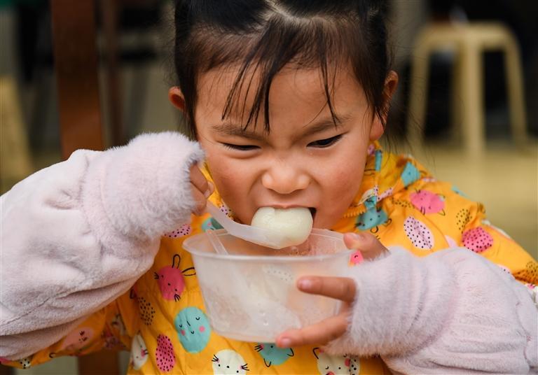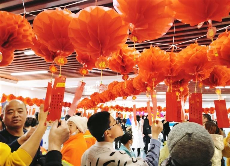 另外,活动中还穿插了猜灯谜环节。一排排鲜艳的灯笼悬挂在活动中心,一条条红纸制成的谜面纸粘在灯笼下,谜语涵盖了环境保护、移风易俗、家风家训等方面,既富有娱乐性,又具知识性。居民们踊跃参与,互相讨论,争相竞猜,表现出了极大的热情和浓厚的兴趣,他们时而冥思苦想,时而互相讨论,活动现场气氛喜庆热烈,到处洋溢着欢乐的笑声。活动还专门设置了奖品,对猜中灯谜的居民进行奖励,大家都尽情享受着猜灯谜活动带来的乐趣。最后,志愿者们将煮好的汤圆递给活动现场的居民,并为辖区空巢老人和环卫工人,送上了一碗碗寄托着爱心和节日问候的汤圆。