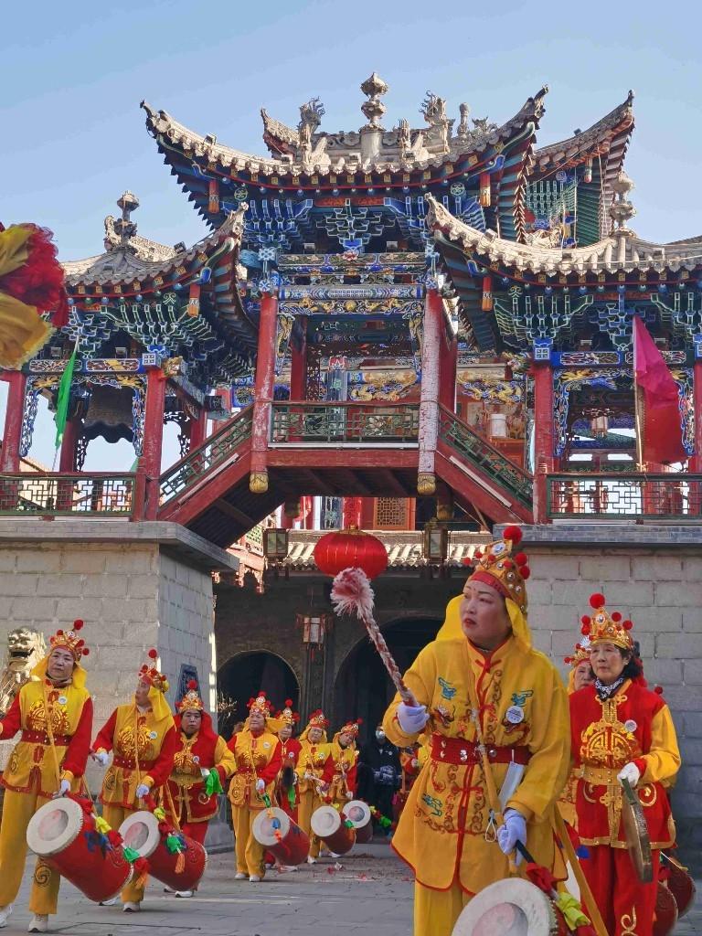 在社火展演现场,人员身穿鲜艳亮丽的服饰,伴随着铿锵欢快的鼓点,以饱满的激情展示了源远流长的民间社火艺术,为群众送来了虎年的祝福。