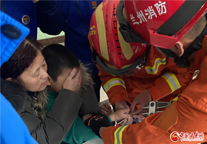 原标题:【甘快看】兰州:小孩手指被卡 消防暖心救援