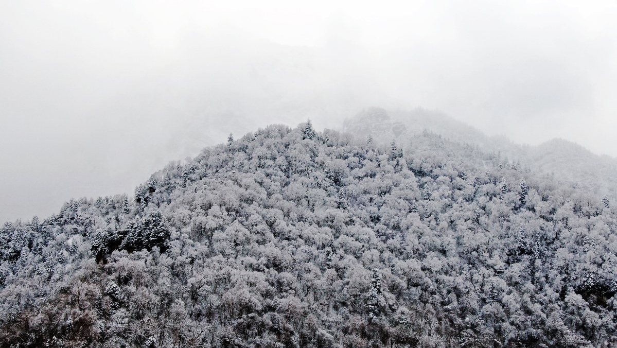 雨水时节,甘肃省陇南市宕昌县迎来降雪。雪后初霁,国家4A级旅游景区官鹅沟森林公园宛若一幅山水丹青画卷,美不胜收。