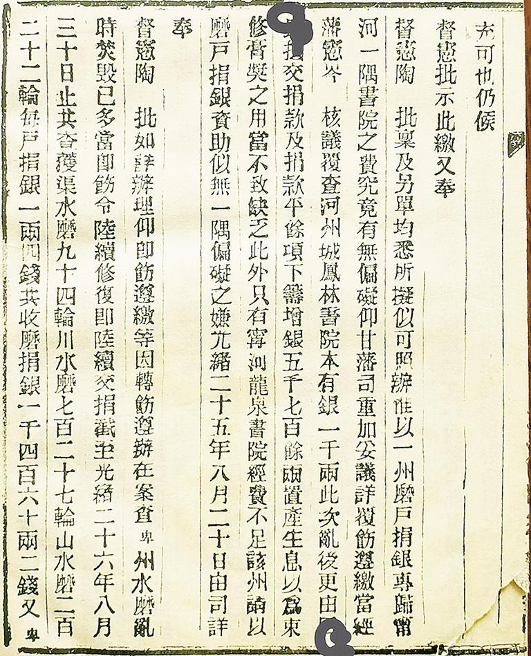 修建凤林书院(左)与爱莲书院(右)的禀呈