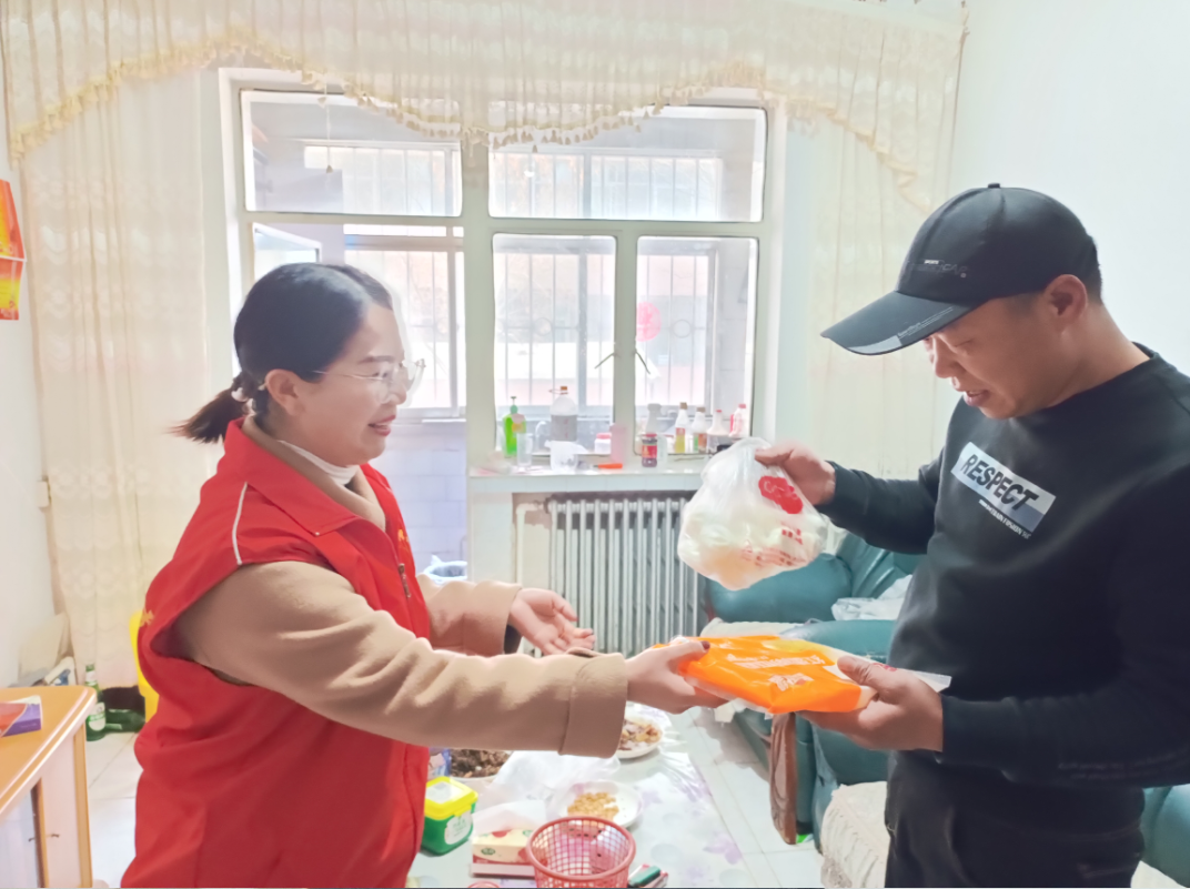 近日,他带着一大包“礼品”交到网格员手中,大礼包里装着17袋红枣糕、4袋速冻饺子、3大袋速冻包子,他说:“姐,我和我媳妇买了点食品,想送给社区的工作人员和社区困难群众,支持你们的工作”。他还说,看见社区干部在疫情期间24小时值班值守,下雪天冒着严寒铲雪铲冰,节假日还在剪除飞线,为社区居民群众作了大量的工作,楼前楼后的路面硬化了,多年经常堵塞的下水接通了市政污水管网,社区和居民之间、居民和居民之间的关系更加和谐了,居民群众感受到了实实在在变化。他想用这样的方式感谢社区工作人员的默默付出,表示今后一定抽时间参加社区志愿服务活动,尽自己的一份力。