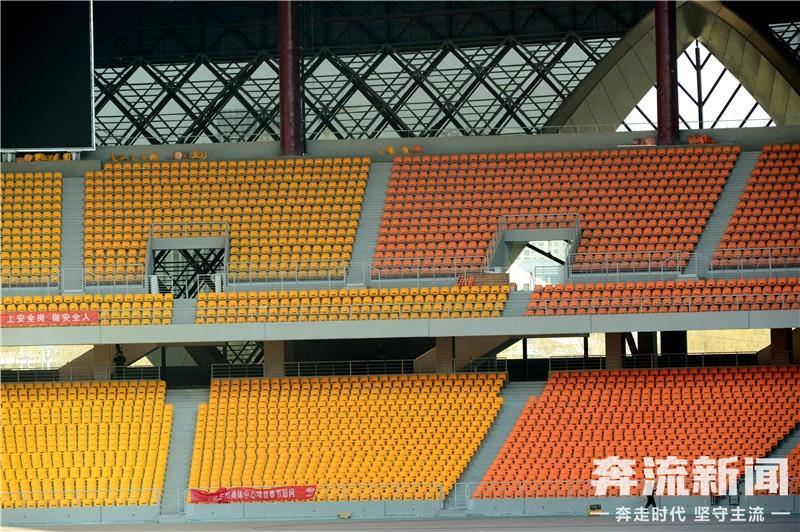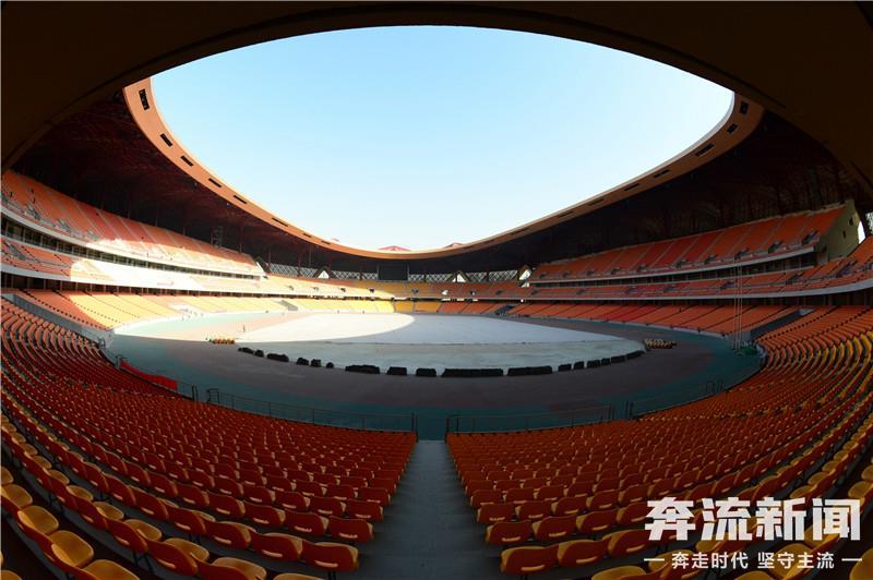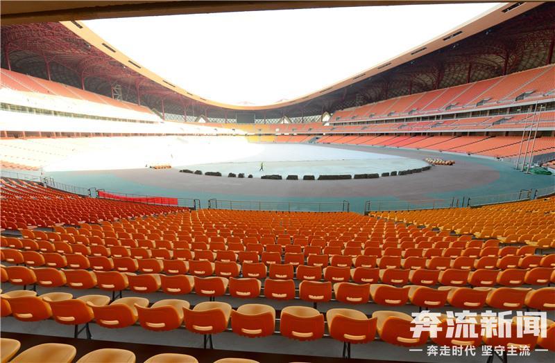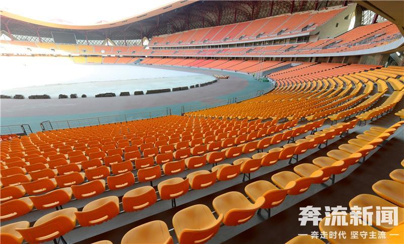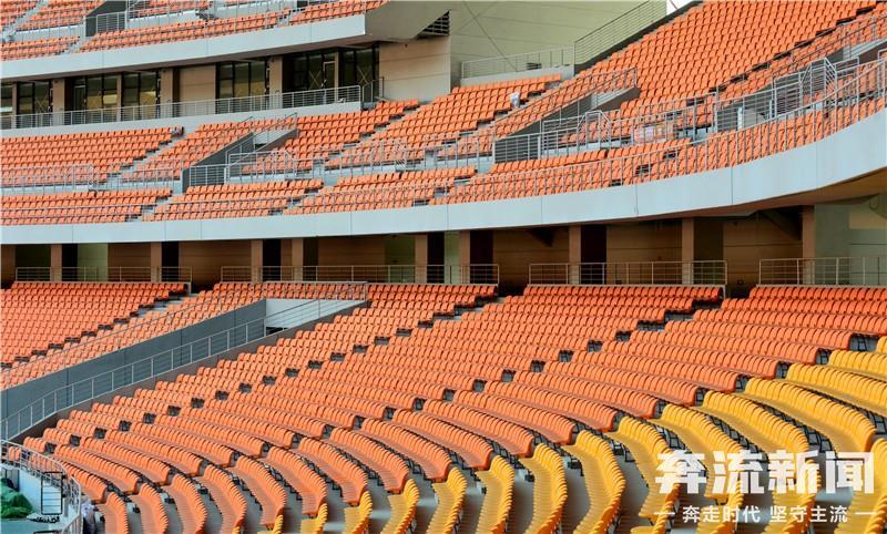 走进场内,记者看到,以橙色、黄色为主的5万余个座位已安装完毕,目前正在进行扫尾施工,并逐步对内场进行清扫。