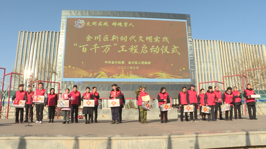 为深化拓展新时代文明实践中心建设,构建科学完备的志愿服务组织体系,推进志愿服务精准化、常态化、便利化、品牌化。3月5日上午,金川区在市人民文化广场举行新时代文明实践“百千万”工程启动仪式。
