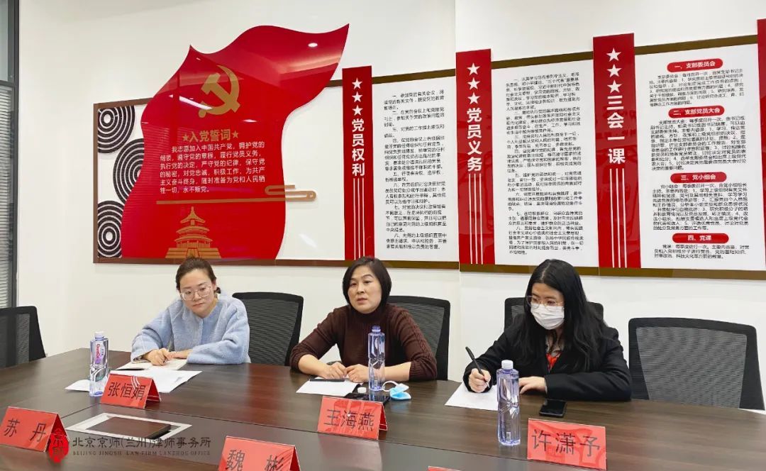 3月7日下午, 中国东方资产管理股份有限公司甘肃省分公司(以下简称“东方资产公司”)风险管理部负责人王海燕与张恒娟、许潇予一行莅临我所参观交流,我所执行主任魏彬、马旭峰主任、党支部副书记苏丹、蔄俊宇律师等到场,与诸位进行了深入交流。