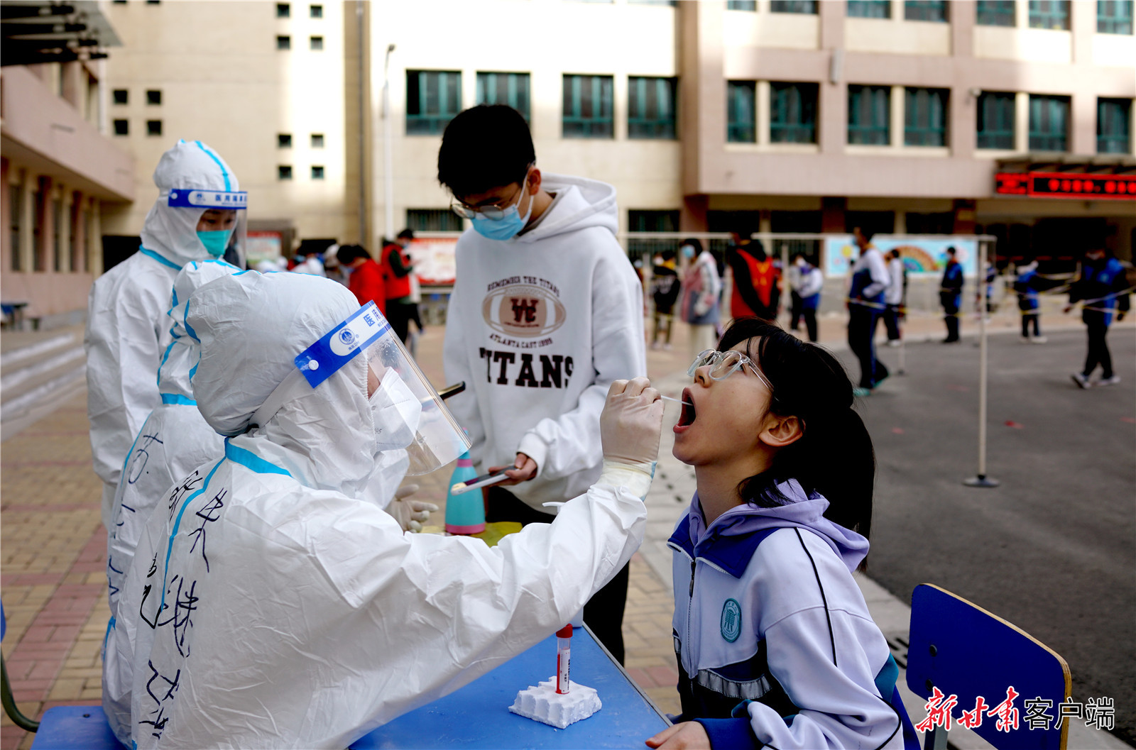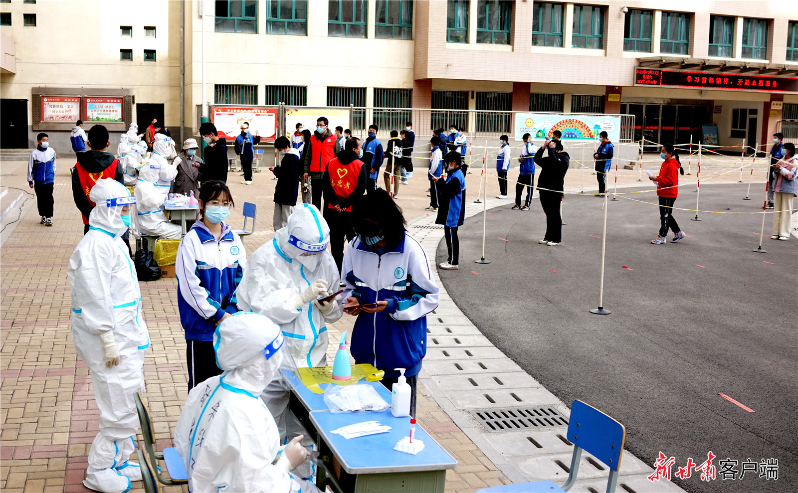 3月12日,在兰州市第八中学核酸检测点上,广大师生在志愿者的引导下有序进行核酸采样;兰州市亚欧商厦、国芳百货等营业场所严格执行疫情防控相关规定,进场人员必须出示健康码测量体温;兰州车站、兰州地铁等公共交通场所也及时发布了防疫提示:“出行的旅客进入候车、乘车区域,必须‘戴好口罩+出示健康码+接受体温检测’”;大街上的市民都佩戴好口罩有序出行……