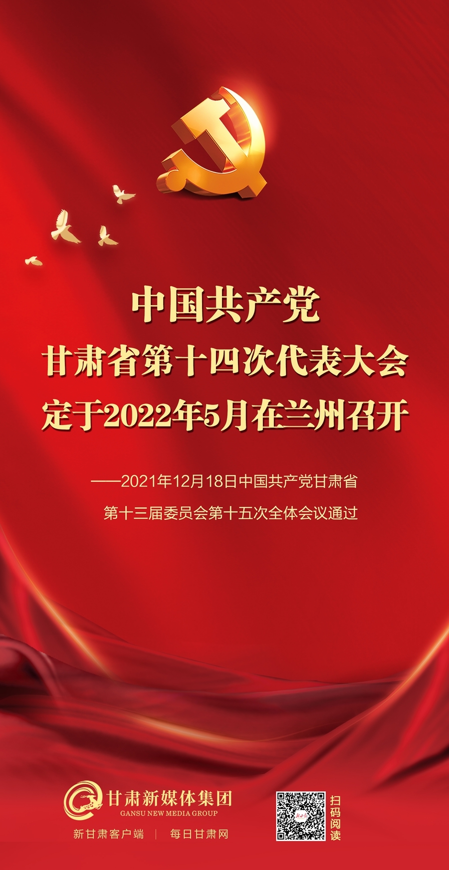 原标题:【微海报】中国共产党甘肃省第十四次代表大会定于2022年5月在兰州召开