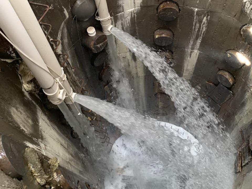 去年以来,选矿厂集思广益,在对近年来库内蓄水量和现有排水设施调研论证的基础上,通过在南库、北库铺设浮桥和栈道,在排水井周围安装操作浮台和PE四通管及蝶阀等改造措施,使库内水资源通过原有排水井、涵洞及排水渠自流至尾矿库后泵房。同时,安装回水管线将尾矿库后泵房与原有3#尾矿输送管线碰头,形成尾矿回水再利用的闭环运行系统。