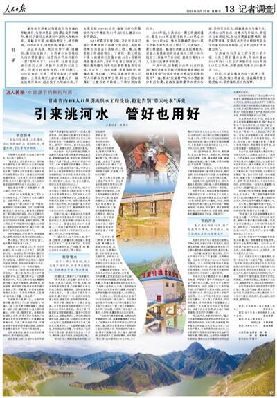 “近年来,我们持续开展专项治理,集中整治在渠道沿线乱排、乱挖、乱占、乱倒等问题,同时在明渠沿线加装护栏,安排专人巡护。”甘肃省水务投资有限责任公司引洮供水公司副总经理王斌斌说。