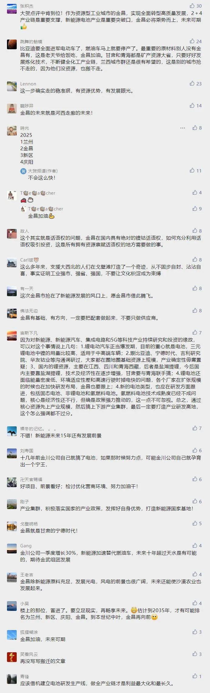 我省知名自媒体达人大贺先生撰写稿件《建设新能源电池之都,金昌凭什么?》阅读量达5395次,引起广大网友热评留言。