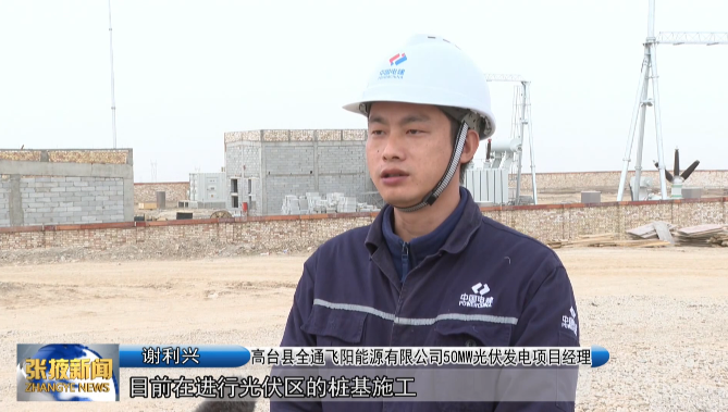 高台县全通飞阳能源有限公司50MW光伏发电项目经理 谢利兴:“目前在进行光伏区的桩基施工以及升压站的电缆敷设,今年6月30号全容量并网发电。”