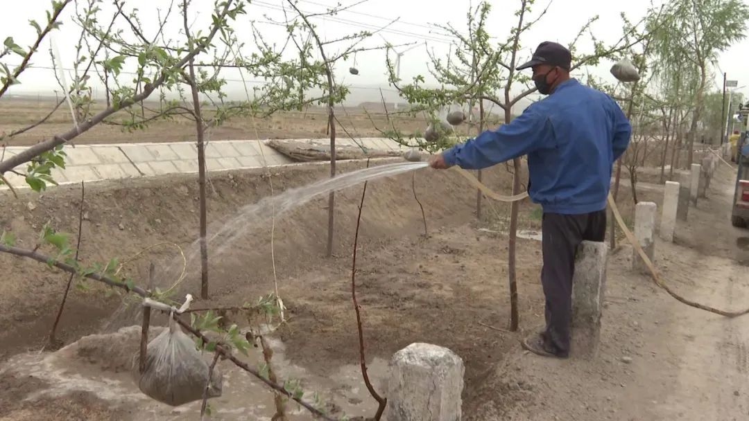 景泰县喜泉镇兴泉村党总支书记李元龙说:“每天早上七点开始组织村民种树,主要栽植的苗木是旱柳、白杨树、云杉等树种,每天大概能栽植大树50棵、小树300多棵。 ”