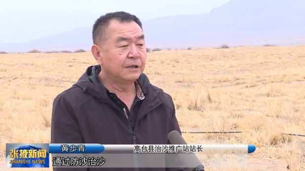 高台县治沙推广站站长 黄步青:“通过防沙治沙,有效的增加植被密度,控制沙漠流动,增加空气湿度,提高空气质量,有效的改善生态环境。”