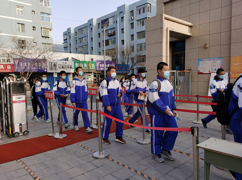 和王凯一样,尽快回到学校学习也是许多同学共同的愿望。范宁宁家住在市一中附近,他步行来到学校去上课。他表示,居家学习的状态并不太理想,返校上课后能释放压力,更好地投入学习。“很激动,很开心。更重要的是,我可以见到许久未见的同学,与他们一起愉快地学习。”范宁宁兴奋的心情溢于言表。
