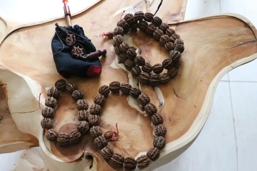 山核桃工艺品高贵典雅,独具纯天然风格,产品在秀出它美丽身姿同时还散发出自然的核桃清香味。其中小瓶适用家居装饰,大瓶适用于酒店、大堂、接待厅装饰或作为政府、企业、私人高档礼品。在把玩健身类核桃过程中,人们利用核桃的坚韧、突起的棱角,揉、搓、压、捏、蹭、滚等技法运动双手,压扎掌上的穴位,刺激手上的反应区,达到舒脉通络活血化淤、强身健体的效果。因核桃皮厚质硬,经过手长期搓揉,汗的浸润,油脂的渗透,时间的打磨,最后成为一件亮里透红、红里透明,不是玛瑙胜似玛瑙的自然艺术品。还有一些其貌不扬的,用空籽山核桃串起做佛珠,简陋古朴,却颇有禅心。