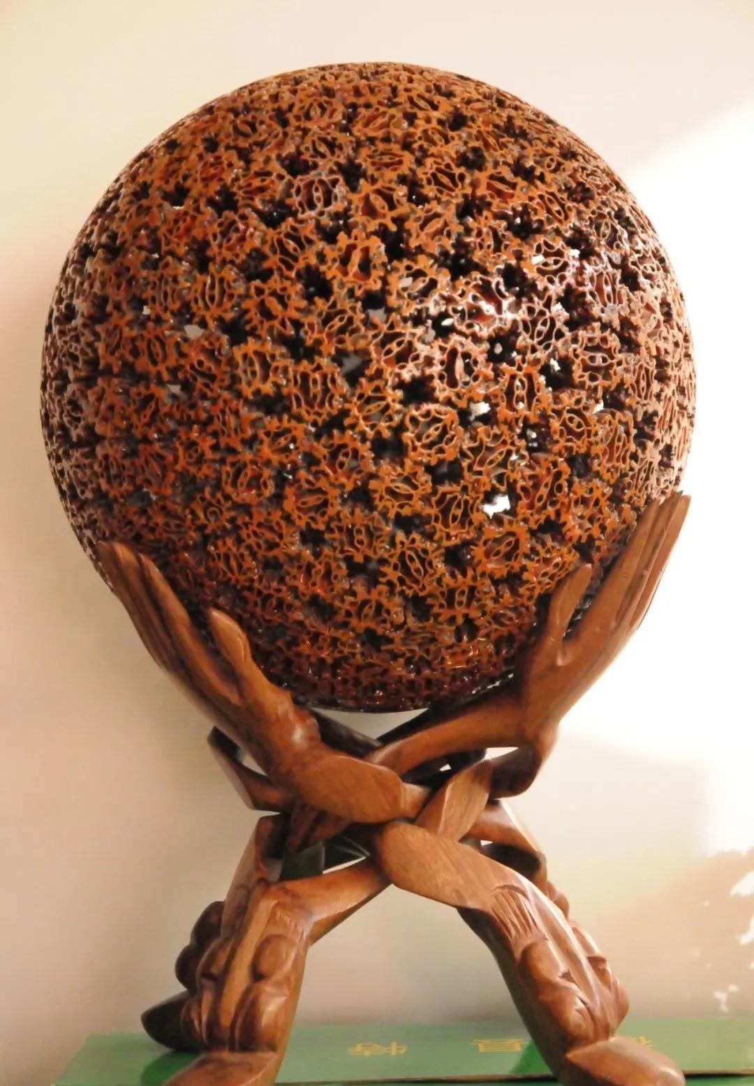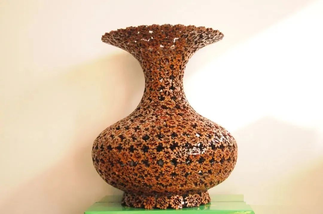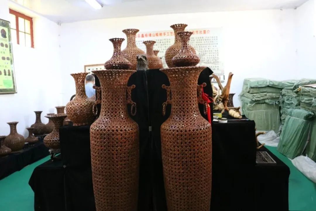 山核桃,原名胡桃,又名羌桃、万岁果、长寿果,有果中之王的美誉,其营养价值很高,果壳坚硬,是制作工艺品的上等材料。在甘肃陇南市,徽县北部山区产有野山核桃,其果实坚硬,一些老手艺人变废为宝,利用其花纹优美,形态奇特,色泽自然、古朴、质地坚硬的自然特点,将其精雕细琢加工成了花瓶、笔筒、横幅、狮子、奔马等工艺品。