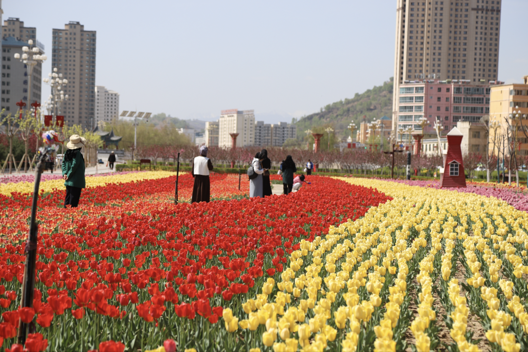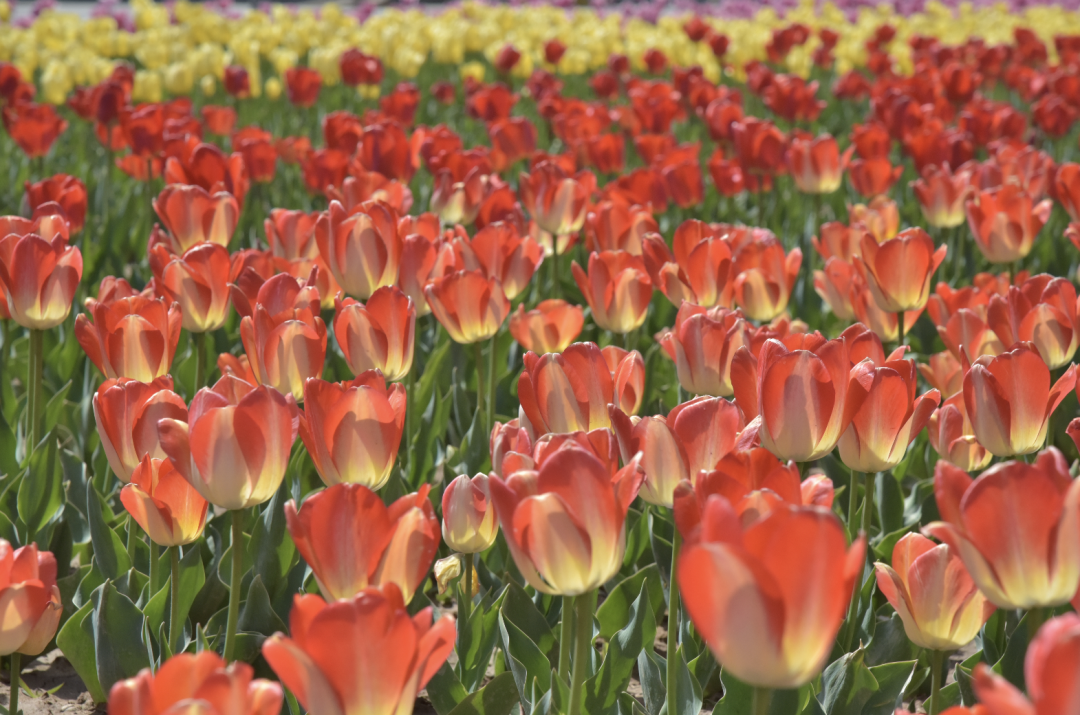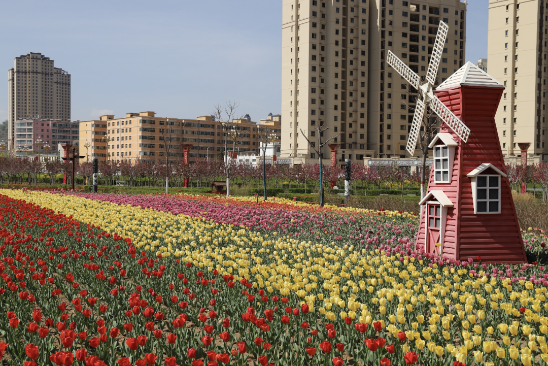 郁金香竞相展颜,芳菲满园,