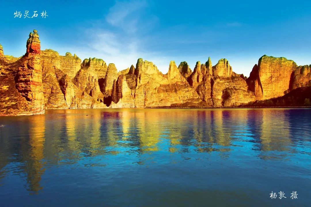 炳灵湖是刘家峡水电站的水库,是著名的“蓝色黄河、甘肃的海”,水域面积130平方公里,库容达57亿立方米,水质清澈、无污染,达到了国家二级饮用水标准。烟波浩渺的湖像无际的绿绸荡漾在群山之中,景色集江南秀丽和高原雄浑于一体,是游人神往的旅游胜地。