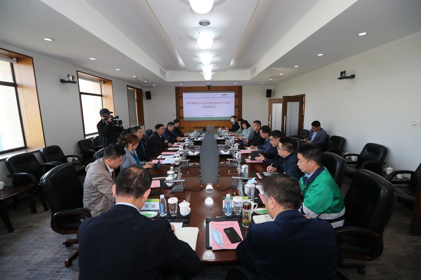 金川集团副总经理万爱东,财务总监蔡娟,相关部室、单位负责人,东营经济技术开发区、东营市东凯高端装备制造产业园相关负责人,中国银行总行、东营分行相关负责人等参加座谈。