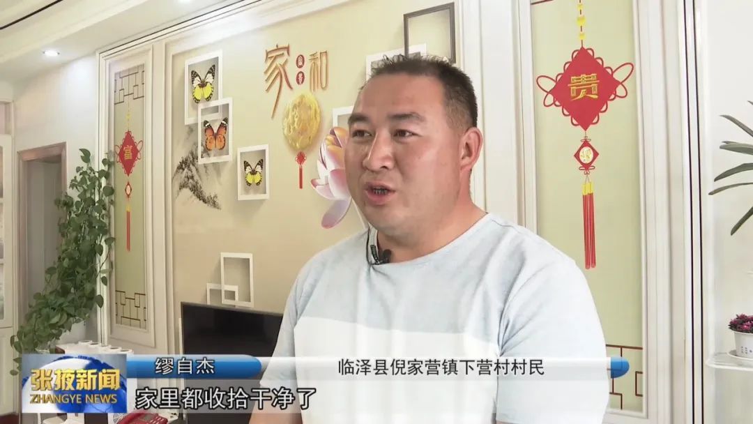 临泽县倪家营镇下营村村民 缪自杰:“ 家里都收拾干净了,房前屋后都有花有树 ,自己住着也舒心。”