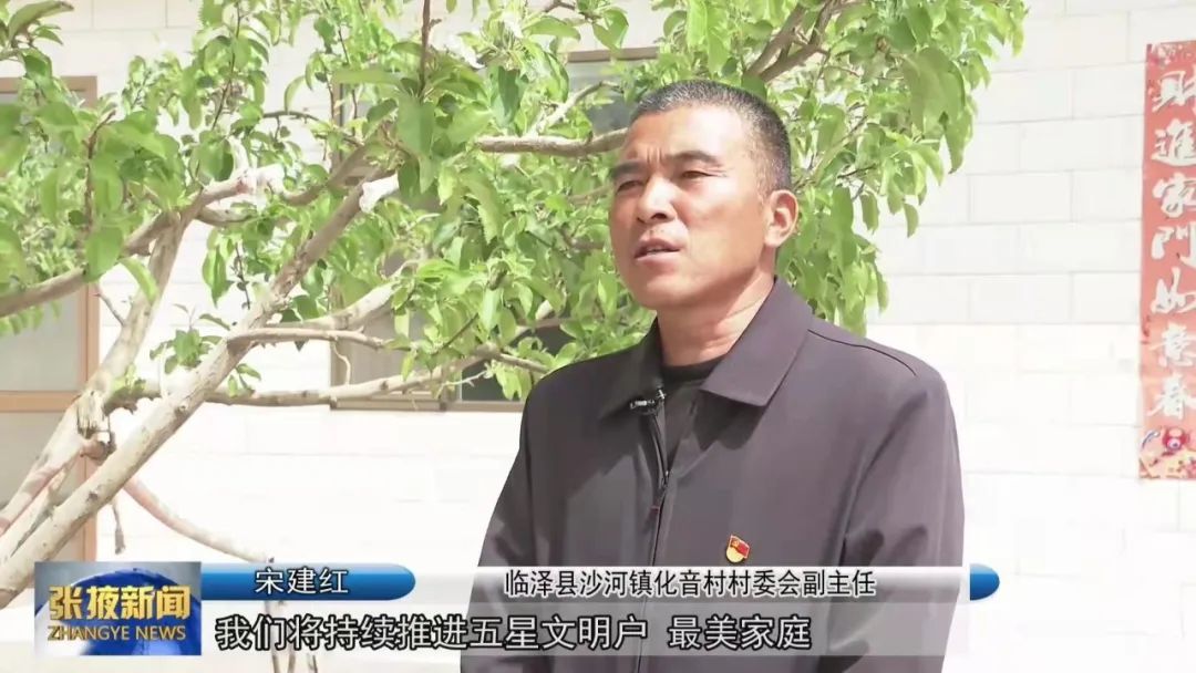 临泽县沙河镇化音村村委会副主任 宋建红:“结合美丽庭院的创建,我们将持续推进五星文明户、 最美家庭,用家风美打造和谐美,推动庭院美。”